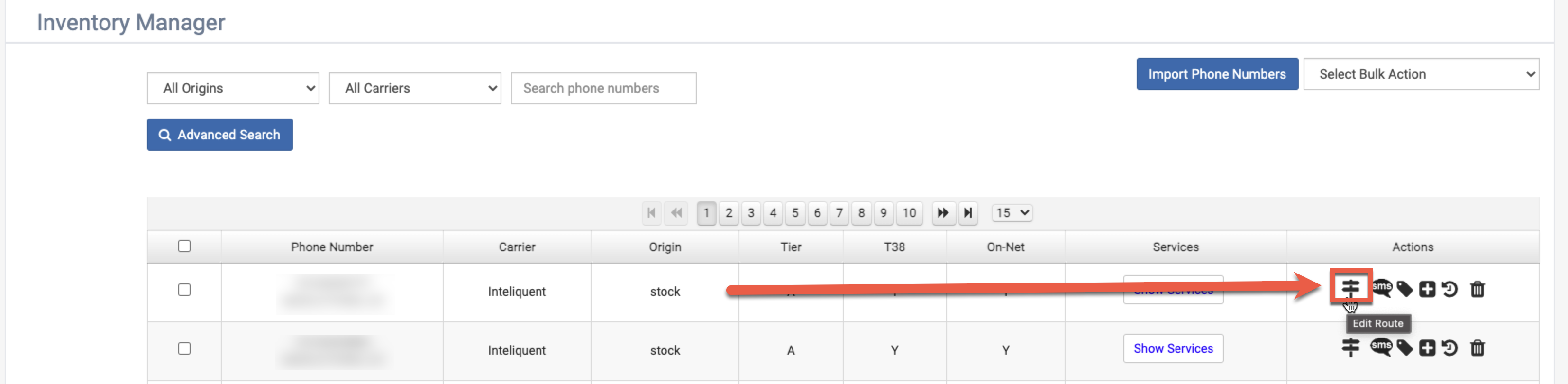 - From ‘Manage Inventory,’ choose any number and manage the call routing by clicking the street sign icon.
