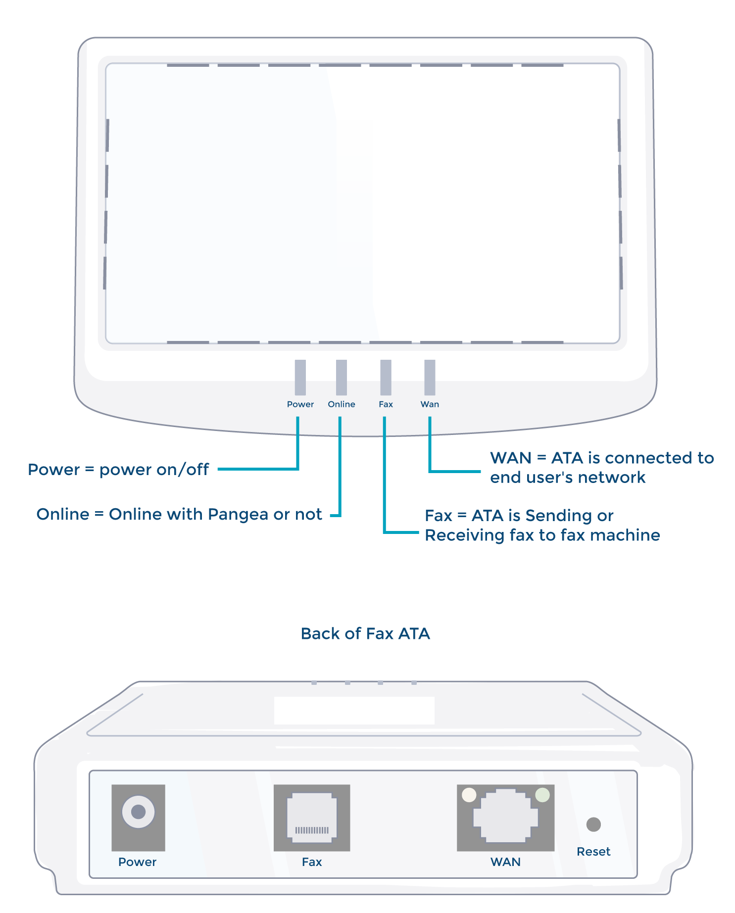 Instant Fax ATAs differ from a SIP ATA that uses SIP and T.38/G.711 to transmit the Fax. The Instant FAX ATA converts fax tones to a file locally, then sends it securely to a server. The server handles the routing and delivery for inbound and outbound faxes with dedicated routing.